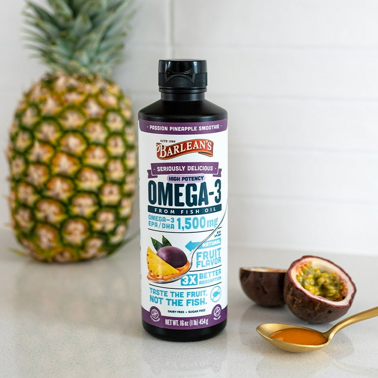 Barlean S Seriously Delicious Passion Pineapple Smoothie High Potency Omega 3 Fish Oil All Natural Fruit Flavor Non Gmo Gluten Free 16 Oz Walmart Com
